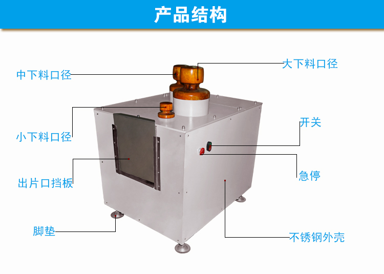 切片步骤:备料—入料—切片—出料 备 料:准备需要切片的物料,如袋子、桶等物品 入 料:将木质压模取出,调整好切片厚度,开启机械后,将物料放入进料口中即可 切 片:用手或压模按紧物料,物料自动切片,转动一圈可切两片。 出 料:从出料口自动出料。