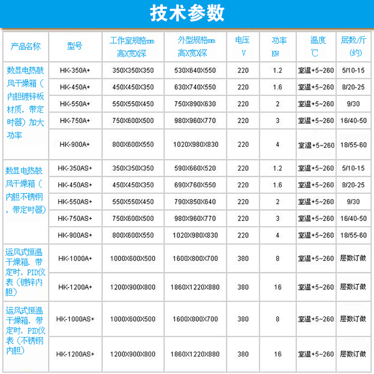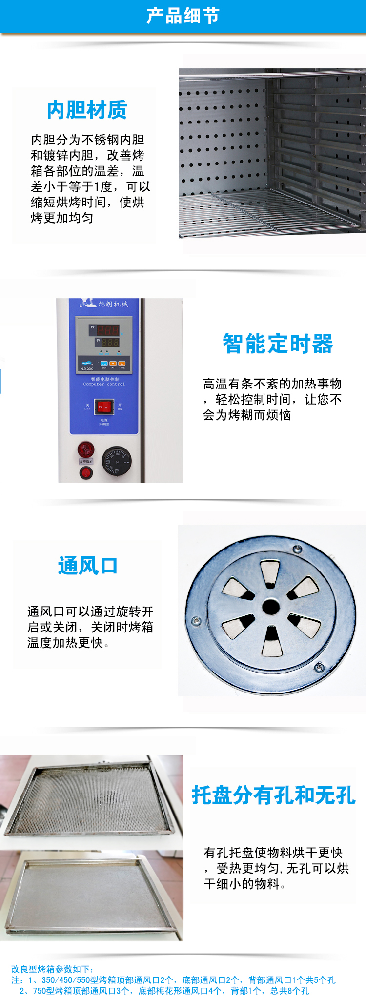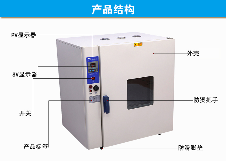 热再经鼓风装置循环流动,确保温度均匀,四周圆弧设计,搁板上下间距可调,内置感温探头。