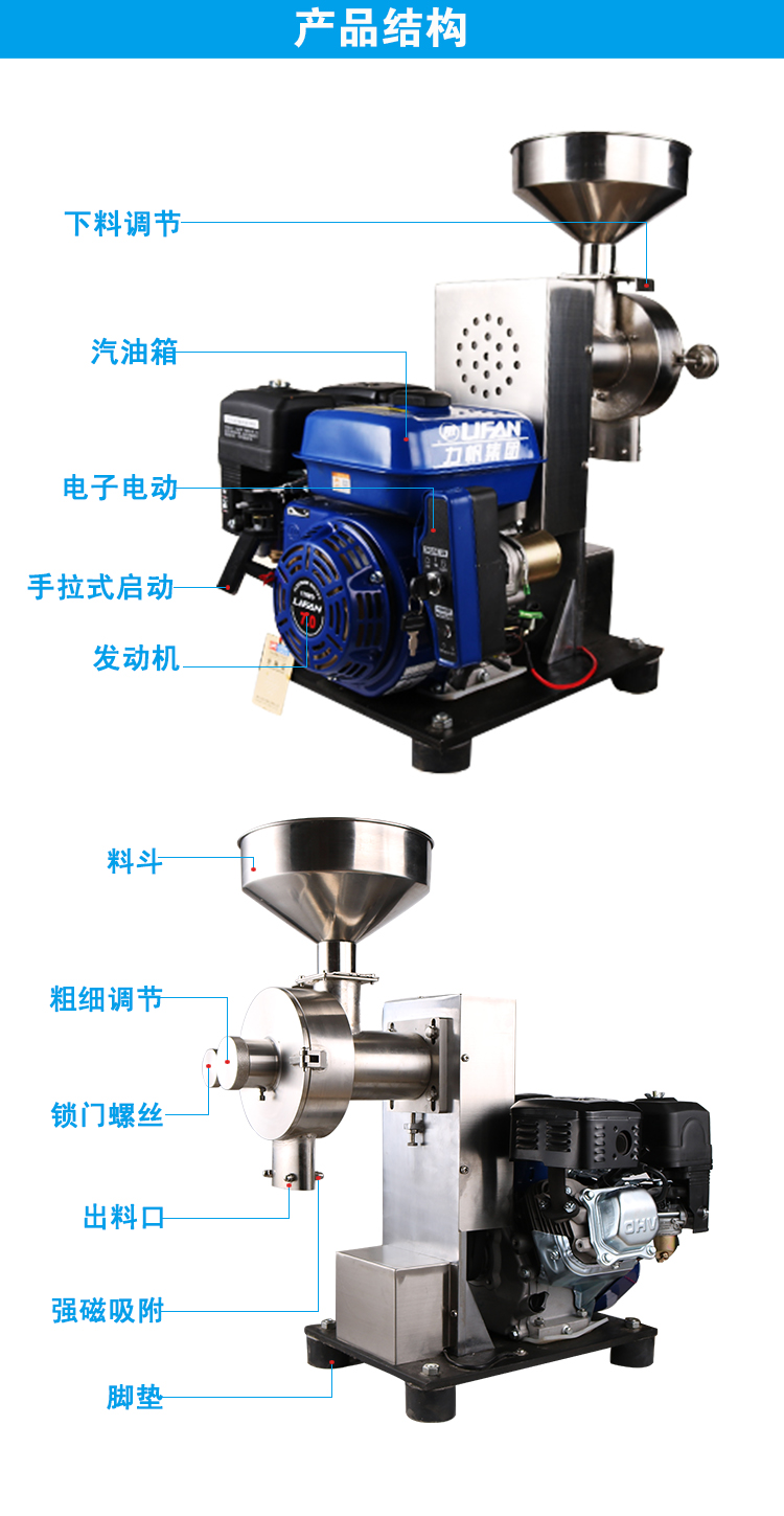 开云(中国)一站式服务官方网站_开云体育官方网站汽油磨粉机工厂直供价:3600元 广州市开云(中国)一站式服务官方网站_开云体育官方网站机械通过质量监督检验合格产品,本机上市以来客户操作使用上所发现的一些实际问题, 我司组织研发、技术队伍在设计、材质、性能、外观,进行反复试验,多次改进、改良,不断提高机器零配件 加工工艺,不断改善机器装配工艺流程,基本保持1.5—2年对产品更新换代一次,目前在市场上的主打产品为 第三代机型,真正、彻底解决磨粉不够细腻、卡机、产量低、噪音大等其他公司同类设备的通病,确保进出料 顺畅,噪音小,使机器能满足多数客户的使用需求。 2012年7月,开云(中国)一站式服务官方网站_开云体育官方网站机械为满足流动作业经营者的使用要求,研发制造了汽油机磨粉机,即“汽油发动机 +磨粉机”,不需连接电源,通过汽油发动机传动,适合流动式磨粉作业。本机可通过控制发动机油门的大小, 调节转速。 ![]() ![]() 我公司对配件的选用一直坚持更优、更好的原则,坚决杜绝劣质、低价的配件。本机整机(含汽油机)均保修一年。 我公司是生产厂家,相对于其他贸易商或者网店,我公司有强大的技术、人员保障和完善周到的售后服务体系,为 广大客户提供最优质的产品和终身的维修售后服务,解除客户的后顾之忧:保修期内属于质量问题,公司免费提供 配件和维修服务;超出保修期限或保修范围,公司也仅收取配件成本费。 ![]() 主要性能特点: 1、机身由304不锈钢铸造和精密加工而成,美观大方、不生锈,符合GMP要求。 2、更加卫生: (1)加装了4个强磁,吸附机器运转过程中磨片磨损的铁粉,干净卫生; (2)机器磨粉腔内不用涂抹润滑油(脂),不会对所加工物料造成污染,保证了食品、药物的安全卫生。 3、提高了机器零配件加工工艺,改进了机器装配流程,噪音低、进料通畅、下料更快、不堵料,磨粉细腻、无粉尘。 4、连续投料式生产,效率高。 5、操作简单方便。 (1)只需要将动磨片套上连轴器,轻轻旋转一下就可以把动磨片安装好。 (2)操作使用机器时,调节磨粉粗细更轻松省力。 (3)磨粉腔内物料余留少。 (4)进料快慢和出料粗细均可调节。 ,特别适用流动作业。加工范围广: (1)各种粮食:芝麻、核桃、大米、黑米、黄豆、绿豆、花生、莲子、玉米、高粱、大麦、荞麦、燕麦等; (2)各种干性药材:杏仁、茯苓、红枣、芡实、枸杞、薏仁、山楂、淮山、首乌、红豆、阿胶、乳香、菟丝子、当归 、党参、黄芪等。 工作原理: 磨粉机靠两块布满齿槽的磨片相对磨动、运转,从而将物料研磨成粉末。 7、友情提示:我司是全国最早开发汽油机的生产厂家,随后一段时间,国内一些小作坊、小型加工厂,先后仿制我司